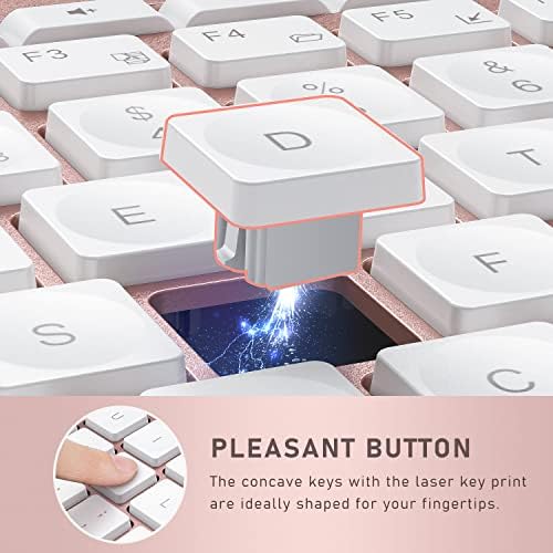 EXTREMELY COMFORTABLE TYPING: the concave keys with the laser key print are ideally shaped for your fingertips. With the elegant, finger-fitting and almost silent keys, that will make your fingers happy after a prolonged session spent on various case documents.