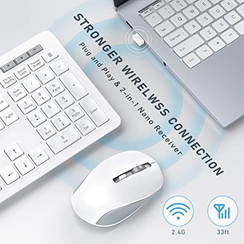 Wireless Keyboard and Mouse Set, Full Size Wireless Mouse and Keyboard Combo with Nano USB Receiver, 2.4G Silent USB Wireless Keyboard Ergonomic with for PC Desktop Laptop, QWERTY UK(White)