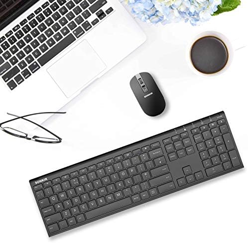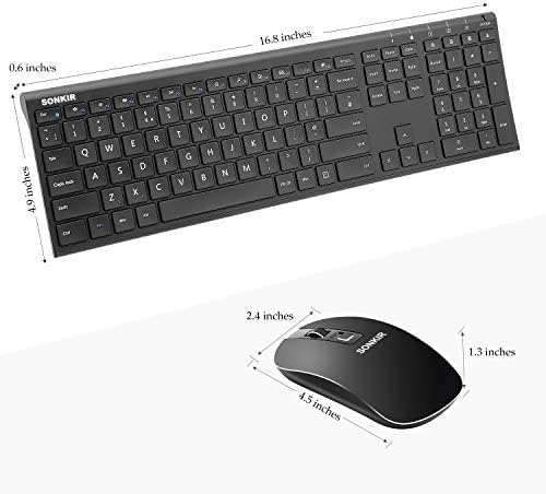 Wireless Keyboard Mouse Combo, Sonkir K-18 Full-Size Ergonomic 2.4G Cordless Keyboard with Protective Film and Silent Mouse Set for Windows Computer PC Laptop Desktop – Black
