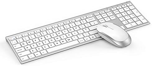 Wireless Rechargeable Keyboard and Mouse Set Ultra Slim Full Size UK Layout QUERTY for Computer Laptop PC Desktop, White and Silver