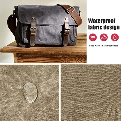 WISEHOMER Vintage Camera Messenger Bag,Camera Bags for Dslr Cameras,Waterproof Waxed Canvas And Leather DSLR Camera Shoulder Bag for Photographers (Khaki)