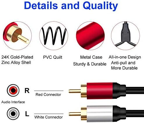1,Dual male RCA cable allow you to use the RCA audio cable with any standard stereo left/right output giving you crystal clear stereo sound and Hi-Fi audio for your home stereo or theater system.