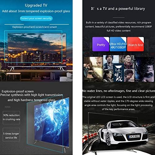 ✔️ Upgraded version of explosion-proof tempered screen. The Internet TV screen is equipped with about 3mm tempered explosion-proof glass to protect the screen safety, explosion-proof/scratch-proof.