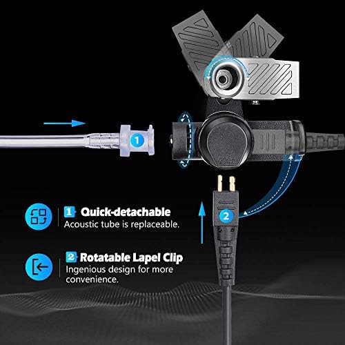 zeadio Surveillance Covert Air Acoustic Tube Walkie Talkie Earpiece Headset with Push-To-Talk Microphone for Kenwood Baofeng HYT 2 Pin Two Way Radio