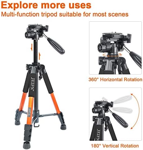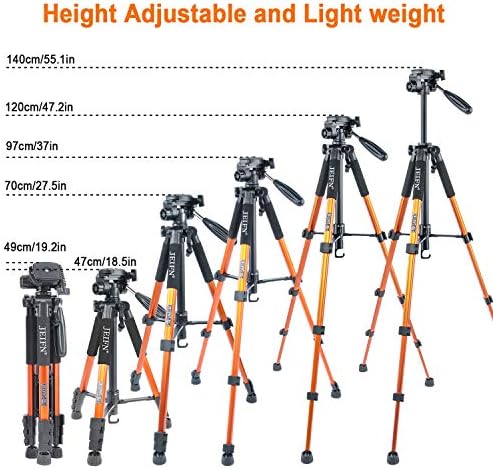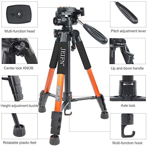 Tripod Adjustable:Aluminum alloy legs which include three flip locks for adjusting the size of each leg, which works great outdoor on uneven surfaces。4-section column leg with quick release locks, get the height you need(from 18in to 58in) provides a more convenient stance satisfying your desired height when shooting。